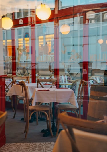 Entrecôte, frites, sauce au poivre - 24.00 Cuisse de poulet rôti, frites, jus de viande - 9.80